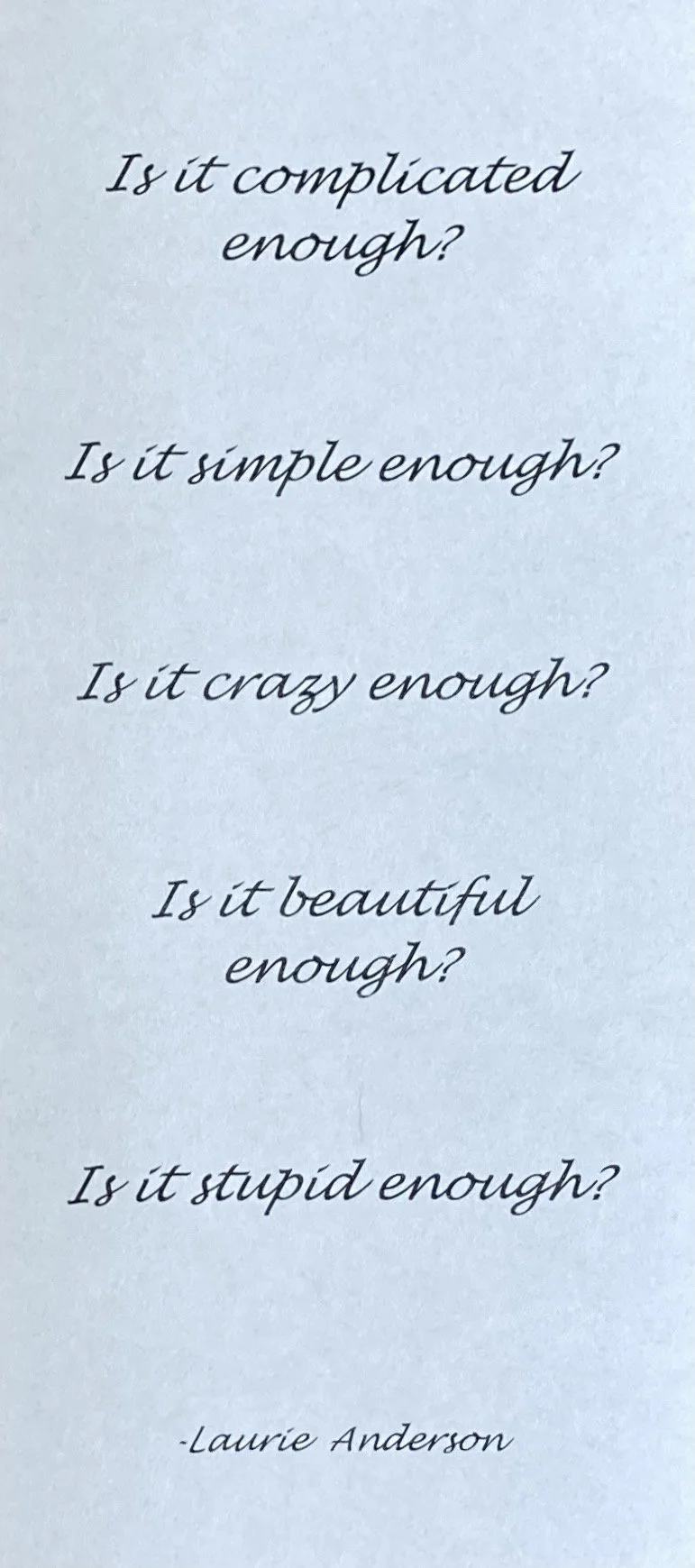 And the five questions Laurie Anderson asks herself.